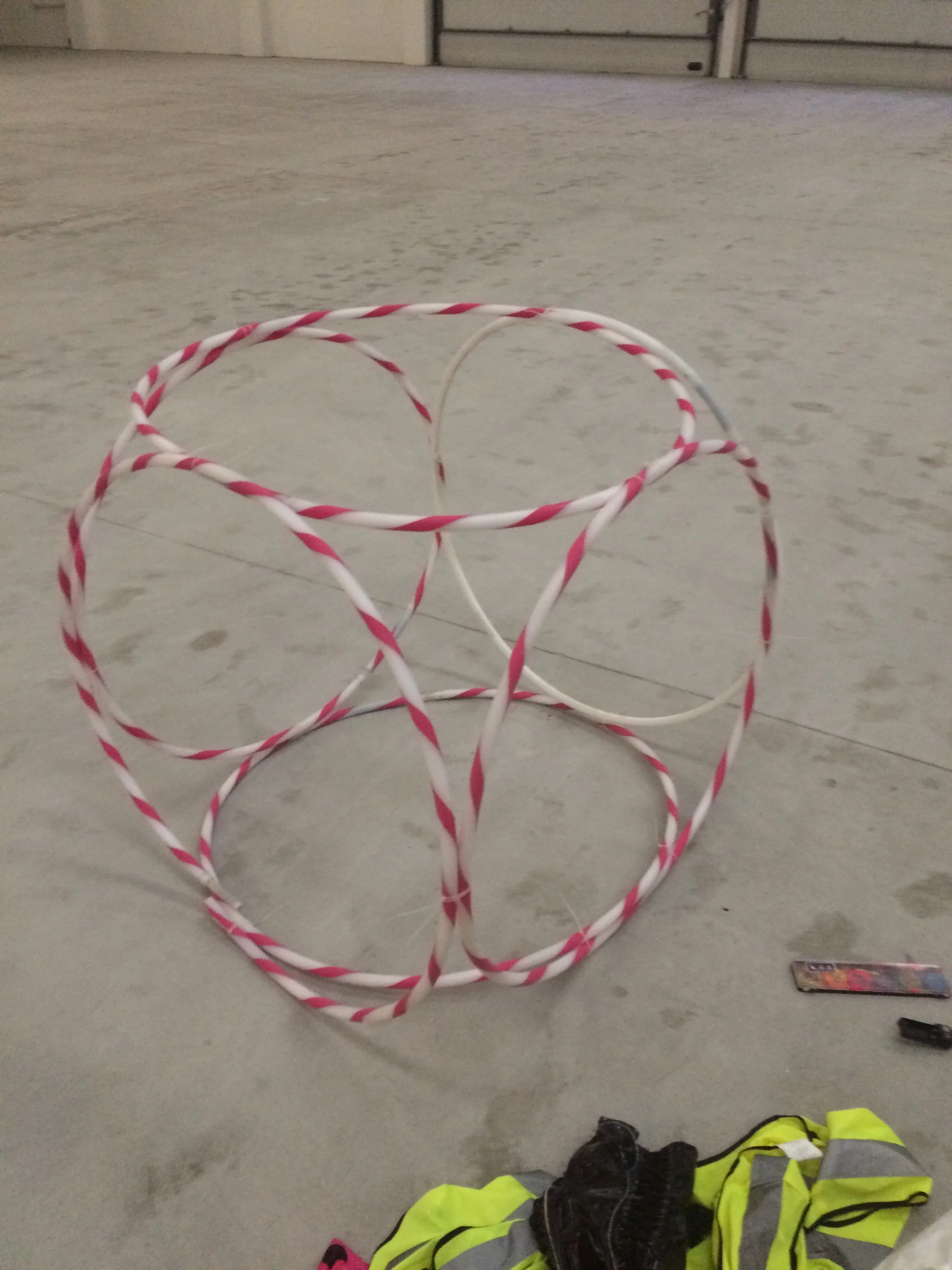 We have put together 2 led cubes using 12 basic light up hula hoops. I have been experimenting with dancers inside the hoops and spinning them.
